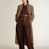 Il secondo drop della collezione Autunno/Inverno 25 si sviluppa come un viaggio rilassato e rinfrescante, ricamato nel tessuto di ogni nostro singolo capo. In misto lana beige, questo cappotto doppiopetto è caratterizzato dalla chiusura con bottoni di colore marrone, dalle due tasche frontali e dalla cintura in vita.