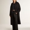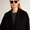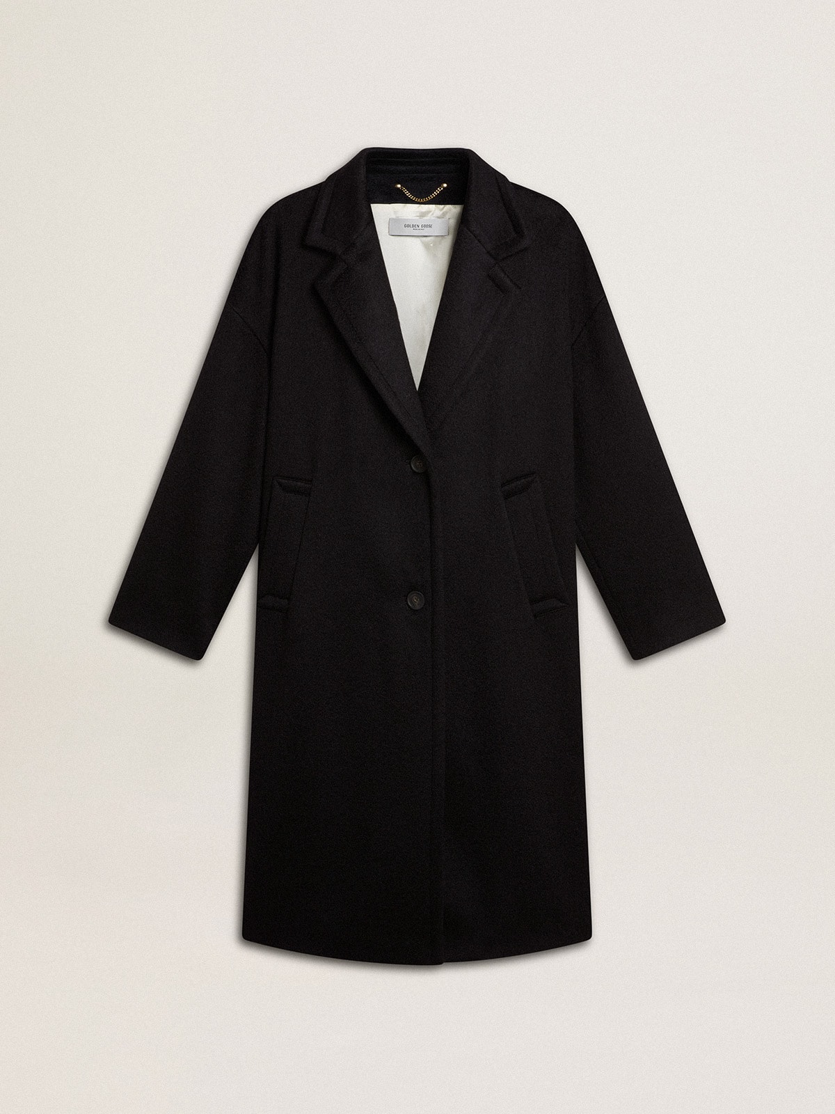 Ispirata all’energia degli anni Novanta, la nostra nuova collezione celebra l’energia pulsante della musica e la forza illimitata dei sogni. In lana nero, questo cappotto monopetto cacoon è caratterizzato dalla chiusura con due bottoni di color nero, dalle due tasche frontali e dalle due stelline sul retro.