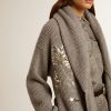 Una storia d’amore per la nostra casa, Marghera. Dove tutto è cominciato. La nostra ultima collezione riflette lo spirito del nostro luogo di nascita, i suoi contrasti, l’anima industriale e i paesaggi manifatturieri, intrecciando ispirazioni provenienti sia dalla vibrante energia dell’abbigliamento da lavoro sia dalla raffinata essenza della sartoria tradizionale. In lana a costine color grigio melange, questo cardigan da donna è caratterizzato dalla chiusura con una cintura in maglia e da un ricamo fatto a mano con perline e paillettes di diverse dimensioni. E come tocco finale, il collo a scialle che dona un effetto ancora più avvolgente.