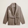 Una storia d’amore per la nostra casa, Marghera. Dove tutto è cominciato. La nostra ultima collezione riflette lo spirito del nostro luogo di nascita, i suoi contrasti, l’anima industriale e i paesaggi manifatturieri, intrecciando ispirazioni provenienti sia dalla vibrante energia dell’abbigliamento da lavoro sia dalla raffinata essenza della sartoria tradizionale. In lana a costine color grigio melange, questo cardigan da donna è caratterizzato dalla chiusura con una cintura in maglia e da un ricamo fatto a mano con perline e paillettes di diverse dimensioni. E come tocco finale, il collo a scialle che dona un effetto ancora più avvolgente.