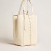 Realizzata per soddisfare le esigenze della vita metropolitana, la borsa 24/7 rende omaggio al ritmo della città. Si tratta di due borse in una, che permettono di muoversi senza problemi nei giorni e nelle notti più impegnative. Questa versione Classica del modello North South in pelle color burro si distingue per i doppi manici regolabili e le chiusure laterali, con cui poter modificare l’ampiezza della borsa. E come tocco finale, le borchie dorate che esaltano l’eleganza di questa Bag.