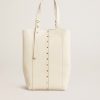 Realizzata per soddisfare le esigenze della vita metropolitana, la borsa 24/7 rende omaggio al ritmo della città. Si tratta di due borse in una, che permettono di muoversi senza problemi nei giorni e nelle notti più impegnative. Questa versione Classica del modello North South in pelle color burro si distingue per i doppi manici regolabili e le chiusure laterali, con cui poter modificare l’ampiezza della borsa. E come tocco finale, le borchie dorate che esaltano l’eleganza di questa Bag.