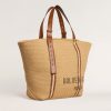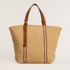 - Tote in rafia naturale con righe a contrasto color bianco e cuoio