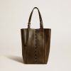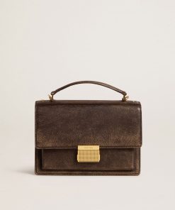 Funzionale ma sofisticata, la Venezia Bag è una dichiarazione di eleganza veneziana, che invita a portare con sé un pezzo della sua anima, ovunque. In pelle verde chiaro lavorata a motivo pitonato, questo modello in versione small si caratterizza per la chiusura con fibbia dorata e per i diversi dettagli metallici, sempre di colore oro. E come tocco finale, la doppia tasca interna.
