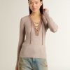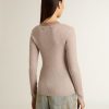 Ispirandosi agli iconici anni Settanta, l’essenza spensierata di quell’epoca prende vita con il primo drop della nostra collezione Autunno/Inverno 25. In lana di colore beige, questa maglia dal fit regular è caratterizzata dall’inserto in pelle beige sullo scollo con dettaglio intrecciato. E come tocco finale, le due stelline sul retro.