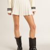 Una collezione dall’anima casual, ma dall’attitude versatile: ispirata agli anni Settanta, porta con sé un allure vintage senza tempo, adatto a ogni occasione e a ogni look. Questa minigonna plissettata bianca è caratterizzata dalla vita elasticata E come tocco finale, il logo Star nero sulla parte posteriore della cintura