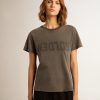 Una collezione che racchiude il nostro DNA, unico e senza tempo, pensata per restare ogni giorno al tuo fianco, tra alti e bassi, sotto il sole o la pioggia. In cotone color grigio antracite dal trattamento distressed, questa T-shirt dal fit slim è caratterizzata dal logo Golden realizzato con il trattamento a riserva.