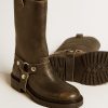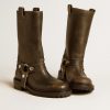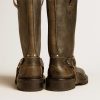 Un’icona di stile senza tempo. I nostri stivali in pelle uniscono artigianalità italiana e carattere deciso, per un look audace e sofisticato che non passa inosservato.Questa versione si caratterizza per la tomaia in pelle nera dall’effetto distressed, per la fibbia in metallo con galvanica color argento e i cinturini in pelle nera alla caviglia. A completare lo stile, le borchie con galvanica color argento.
