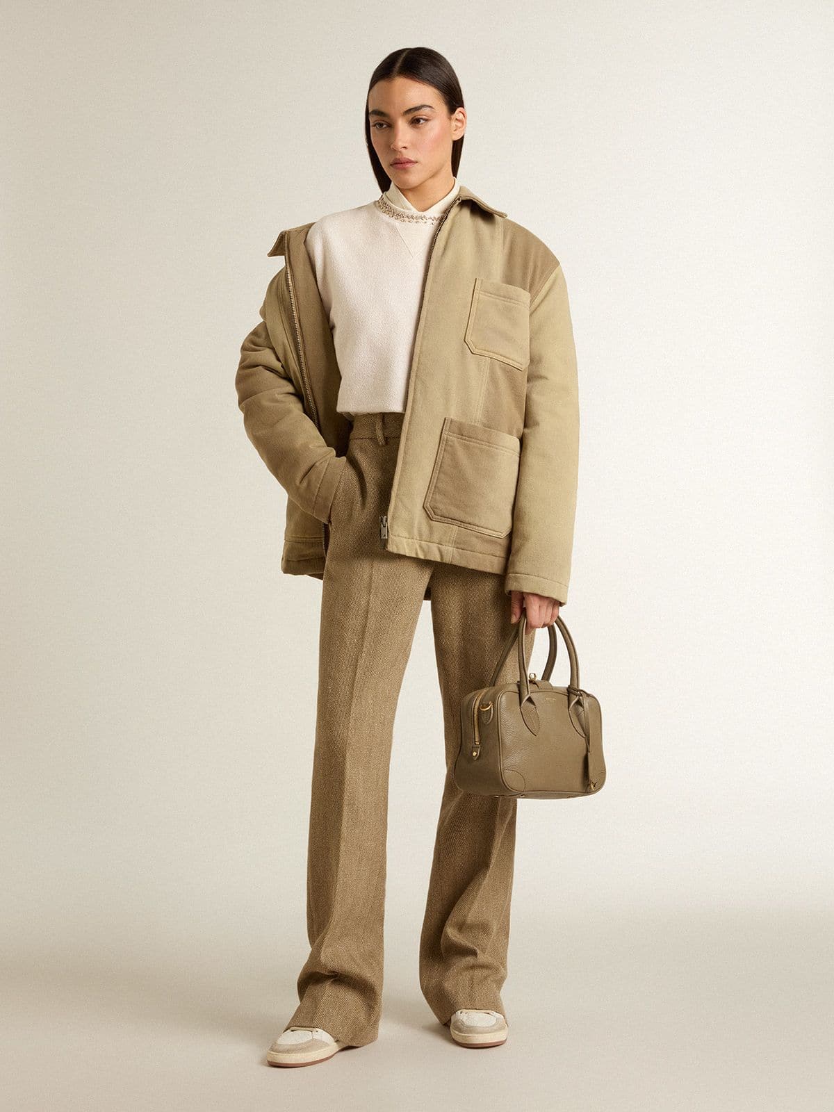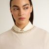 Golden Goose Felpa Da Donna Cropped In Cotone Color Panna Con Cristalli Sul Davanti | Panna | Donna Men’s