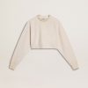 Golden Goose Felpa Da Donna Cropped In Cotone Color Panna Con Cristalli Sul Davanti | Panna | Donna Men’s