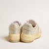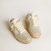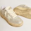 Ispirata ai gloriosi giorni del basket americano, la sneaker Forty2 porta con sé il fascino evergreen degli anni ’90. Rievocando un percorso leggendario, la silhouette chunky low-top e il design sportivo celebrano lo spirito indomito dell’eterno sognatore. Dalla costruzione artigianale inedita, questa versione in pelle bianca impreziosita da cristalli Swarovski all-over si caratterizza per la stella in TPU bianco dall’effetto textured 3D. E come tocco finale, il piping bianco, e i lacci color panna.