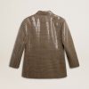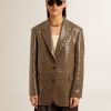 Una storia d’amore per la nostra casa, Marghera. Dove tutto è cominciato. La nostra ultima collezione riflette lo spirito del nostro luogo di nascita, i suoi contrasti, l’anima industriale e i paesaggi manifatturieri, intrecciando ispirazioni provenienti sia dalla vibrante energia dell’abbigliamento da lavoro sia dalla raffinata essenza della sartoria tradizionale. In pied de poule e dal fit boyfriend, questa giacca da donna è caratterizzata dal ricamo all-over di paillettes. E come tocco finale, la fodera in viscosa jacquard con logo.