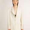Golden Goose Giacca Over Monopetto Da Donna Di Colore Bianco Con Effetto Seta E Ricamo | Bianco | Donna Men’s