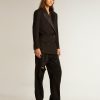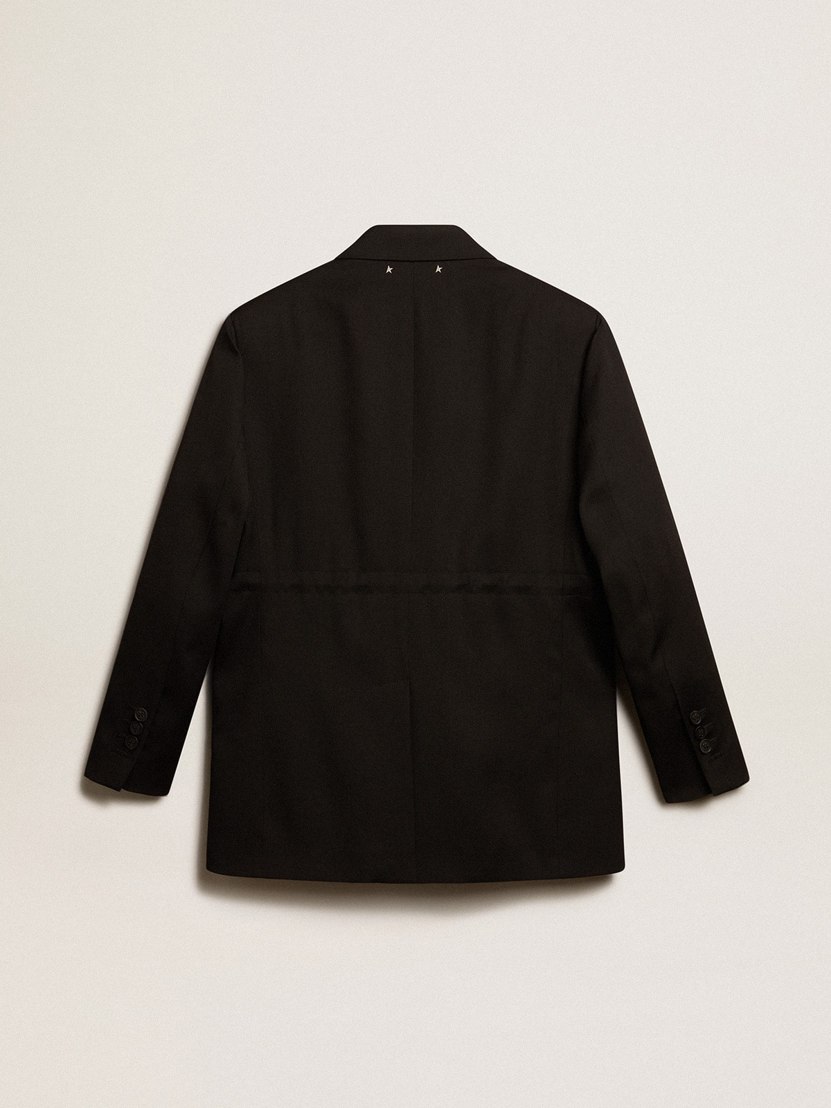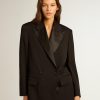 Una collezione che racchiude il nostro DNA, unico e senza tempo, pensata per restare ogni giorno al tuo fianco, tra alti e bassi, sotto il sole o la pioggia. In lana di colore nero, questa giacca smoking da donna dal fit boyfriend è caratterizzata dalle tre tasche sul davanti e le due stelline sul retro.