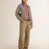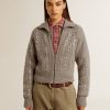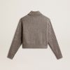 Una storia d’amore per la nostra casa, Marghera. Dove tutto è cominciato. La nostra ultima collezione riflette lo spirito del nostro luogo di nascita, i suoi contrasti, l’anima industriale e i paesaggi manifatturieri, intrecciando ispirazioni provenienti sia dalla vibrante energia dell’abbigliamento da lavoro sia dalla raffinata essenza della sartoria tradizionale. In lana a costine color grigio melange, questo maglione cropped da donna è caratterizzato dalla chiusura con zip e dal ricamo a mano sulle maniche anteriori e sul davanti con motivi geometrici di pailettes argento.