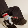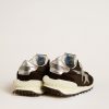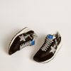 Nata sui campi d’atletica leggera, con un tocco vintage anni ‘70. In omaggio alla maratona che è la vita, le nostre nuove sneaker Marathon sono progettate per accompagnarti nel viaggio verso i tuoi sogni. Questo modello da uomo è composto da una tomaia in nylon ripstop nero, la stella argento e il talloncino in nappa laminata color argento. La parte del talloncino è caratterizzata dall’inserimento di uno stabilizer completamente in 3D, tratto iconico di questa silhouette che le conferisce dinamismo enfatizzandone la componente cushioning come mai prima. A completarne lo stile, i lacci in lurex che, insieme al battistrada stellato, lasciano un’impronta unica.