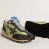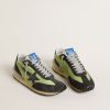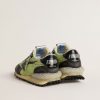 Nata sui campi d’atletica leggera, con un tocco vintage anni ‘70. In omaggio alla maratona che è la vita, le nostre nuove sneaker Marathon sono progettate per accompagnarti nel viaggio verso i tuoi sogni. Questo modello da uomo è composto da una tomaia in nylon verde, la stella nera e il talloncino in nappa laminata color nero. La parte del talloncino è caratterizzata dall’inserimento di uno stabilizer completamente in 3D, tratto iconico di questa silhouette che le conferisce dinamismo enfatizzandone la componente cushioning come mai prima. A completarne lo stile, i lacci in lurex che, insieme al battistrada stellato, lasciano un’impronta unica.