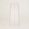 Una collezione dall’anima casual, ma dall’attitude versatile: ispirata agli anni Settanta, porta con sé un allure vintage senza tempo, adatto a ogni occasione e a ogni look. Ispirato al mondo sartoriale, richiamato dalla piega impunturata sul davanti, questo pantalone jogging in jersey tecnico di colore bianco papiro si caratterizza per la gamba affusolata. E come tocco finale, il nastro in gros grain di colore bianco sui lati delle gambe con stelle nere a contrasto.