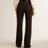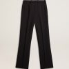 Una storia d’amore per la nostra casa, Marghera. Dove tutto è cominciato. La nostra ultima collezione riflette lo spirito del nostro luogo di nascita, i suoi contrasti, l’anima industriale e i paesaggi manifatturieri, intrecciando ispirazioni provenienti sia dalla vibrante energia dell’abbigliamento da lavoro sia dalla raffinata essenza della sartoria tradizionale. Di colore nero, questo pantalone da donna in misto lana si caratterizza per la gamba dritta e morbida e per le due stelline applicate sul retro.