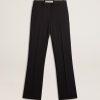 Una storia d’amore per la nostra casa, Marghera. Dove tutto è cominciato. La nostra ultima collezione riflette lo spirito del nostro luogo di nascita, i suoi contrasti, l’anima industriale e i paesaggi manifatturieri, intrecciando ispirazioni provenienti sia dalla vibrante energia dell’abbigliamento da lavoro sia dalla raffinata essenza della sartoria tradizionale. Di colore nero, questo pantalone da donna in misto lana si caratterizza per la gamba dritta e morbida e per le due stelline applicate sul retro.