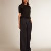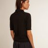 Una collezione che racchiude il nostro DNA, unico e senza tempo, pensata per restare ogni giorno al tuo fianco, tra alti e bassi, sotto il sole o la pioggia. Di colore nero, questa polo da donna in lana merino si caratterizza per la maniche corte e i quattro bottoni centrali.