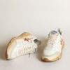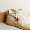 Carattere urban e anima artigianale si incontrano nelle nostre Running Sole: le compagne ideali per le tue avventure metropolitane. Questo modello si caratterizza per la tomaia in nappa bianca con stella e talloncino in pelle con stampa digitale rossa. E come tocco finale, la linguetta in nylon bianco e i lacci color panna.