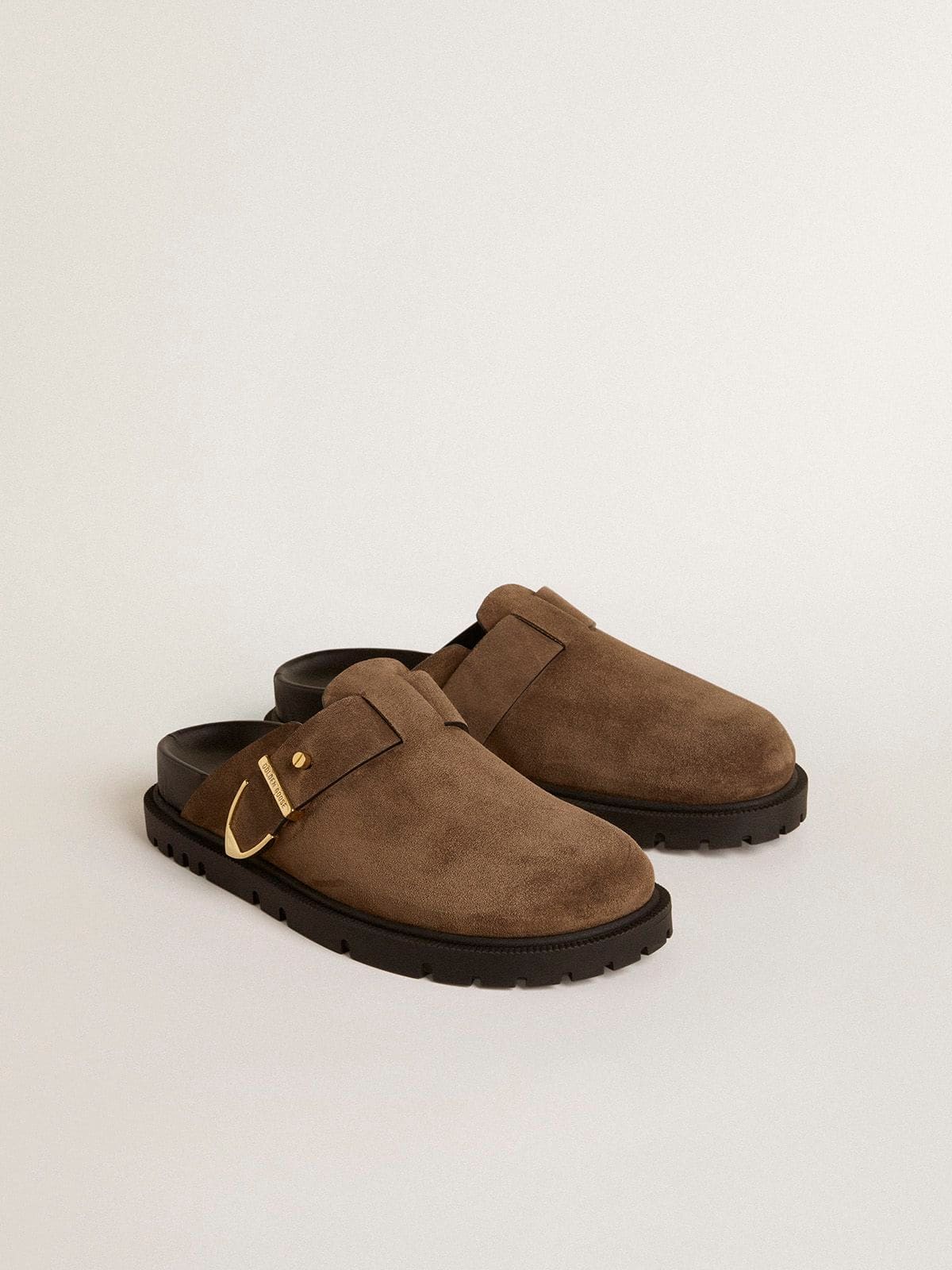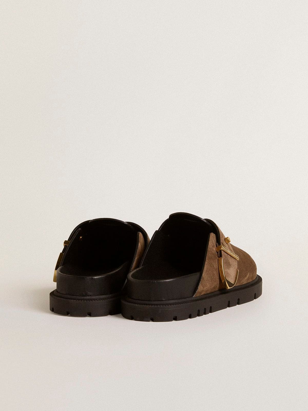 Nato dal desiderio di fondere comfort e carattere, il sabot Lucy reinterpreta una silhouette iconica secondo i codici della nuova quotidianità.Complici di uno stile senza tempo, i Lucy trasformano ogni passo con il loro volume deciso e il dettaglio signature con logo inciso.Con la tomaia in suede color tortora, questa versione da donna si distingue per la suola scolpita e per il cinturino in suede ton sur ton con fibbia e dettagli in metallo dorato.