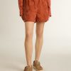 Golden Goose Shorts Da Donna In Jacquard Rosso Mattone Con Motivo Floreale Marino | Autumn Glaze Rosso Mattone | Donna Men’s