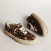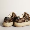 - Tomaia in cavallino con stampa leopardata color beige, marrone e nero