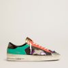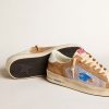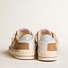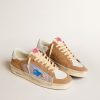 I gloriosi anni Novanta racchiusi in una sneaker. Le Stardan sono un omaggio alle icone del basket di quella decade, ma con uno sguardo rivolto al presente. In questa versione, la tomaia in suede color tabacco con inserti in rete bianca si caratterizza per la stella in pelle blu e per il talloncino e la punta in pelle cracklé bianca. E come tocco finale, la linguetta in nylon color beige, e i lacci color beige.