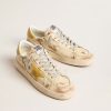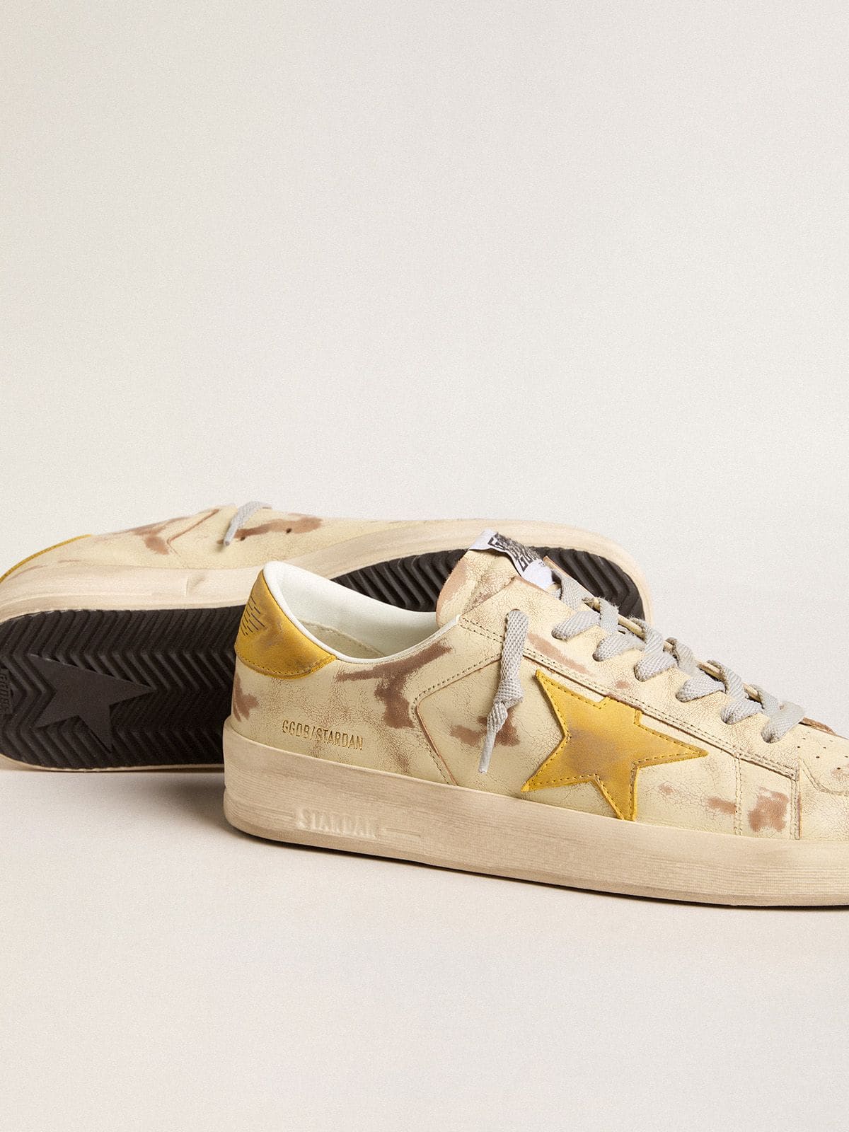 I gloriosi anni Novanta racchiusi in una sneaker. Le Stardan sono un omaggio alle icone del basket di quella decade, ma con uno sguardo rivolto al presente. In questa versione da uomo, la tomaia in pelle color beige dal trattamento distressed si caratterizza per la stella e per il talloncino in nabuk color miele. E come tocco finale, i lacci color grigio ghiaccio.