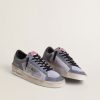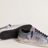 I gloriosi anni Novanta racchiusi in una sneaker. Le Stardan sono un omaggio alle icone del basket di quella decade, ma con uno sguardo rivolto al presente. In questa versione, la tomaia in suede color azzurro polvere con inserti in rete bianca si caratterizza per la stella in pelle verde e per il talloncino in pelle verde. E come tocco finale, la linguetta in nylon color beige, e i lacci neri.