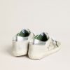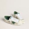 Un’icona senza tempo, ma in continua evoluzione. In Golden, amiamo prendere i nostri classici e reinterpretarli costantemente, sempre sotto una luce diversa. Con la tomaia in suede e rete di colore bianco, queste Super-Star da uomo si distinguono per la stella in pelle verde e per il talloncino in pelle laminata argento. E come tocco finale, l’interno verde e i lacci bianchi.