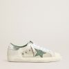 Un’icona senza tempo, ma in continua evoluzione. In Golden, amiamo prendere i nostri classici e reinterpretarli costantemente, sempre sotto una luce diversa. Con la tomaia in suede e rete di colore bianco, queste Super-Star da uomo si distinguono per la stella in pelle verde e per il talloncino in pelle laminata argento. E come tocco finale, l’interno verde e i lacci bianchi.