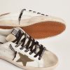 Un’icona senza tempo, ma in continua evoluzione. In Golden, amiamo prendere i nostri classici e reinterpretarli costantemente, sempre sotto una luce diversa. Questo modello in pelle bianca si distingue per la stella in canvas color verde oliva, per il talloncino in pelle color cuoio e per la linguetta in suede color grigio ghiaccio. E come tocco finale di stile, i lacci neri con logo a contrasto.