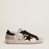 Il design iconico delle sneakers Super-Star si rinnova ogni stagione grazie a trattamenti esclusivi e combinazioni di materiali innovativi. Questo modello si caratterizza per la tomaia in pelle argentata con inserti neri in pelle a contrasto.
