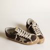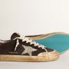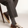 Un’icona senza tempo, ma in continua evoluzione. In Golden, amiamo prendere i nostri classici e reinterpretarli costantemente, sempre sotto una luce diversa. Con la tomaia in suede color marrone, questo modello si caratterizza per la stella in pelle laminata color platino e per il talloncino in nabuk color cioccolato. E come tocco finale, lo stitching sulla tomaia, il passalacci con dettaglio in cotone spigato, e i lacci, tutti color panna.