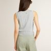 Abbracciando l’essenza della stagione, questa Collezione esprime dinamismo e libertà, intrecciando leggerezza raffinata e accenti vivaci. In misto cotone, questo tank top smanicato in maglia si caratterizza per il motivo jaquard e per le costine sui bordi. E come tocco finale, le due stelline sul retro.