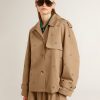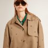 Una collezione ispirata all’armonia della natura, dove ogni dettaglio crea un senso di ricercata eleganza. In cotone pesante, questo trench corto ma dal fit over, è caratterizzato da cristalli di varie dimensioni all over. E come tocco finale, la chiusura con cinque bottoni in corno logati e la fodera interna stampata a righe.