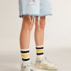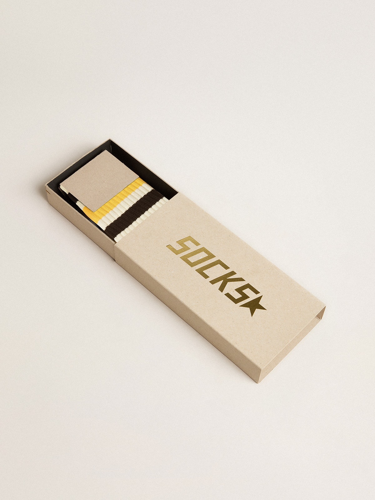L’anima vintage è una delle nostre componenti distintive: questi calzini in versione bianco vissuto sono caratterizzati da dettagli distressed sul gambale e da stripes nere e gialle.