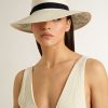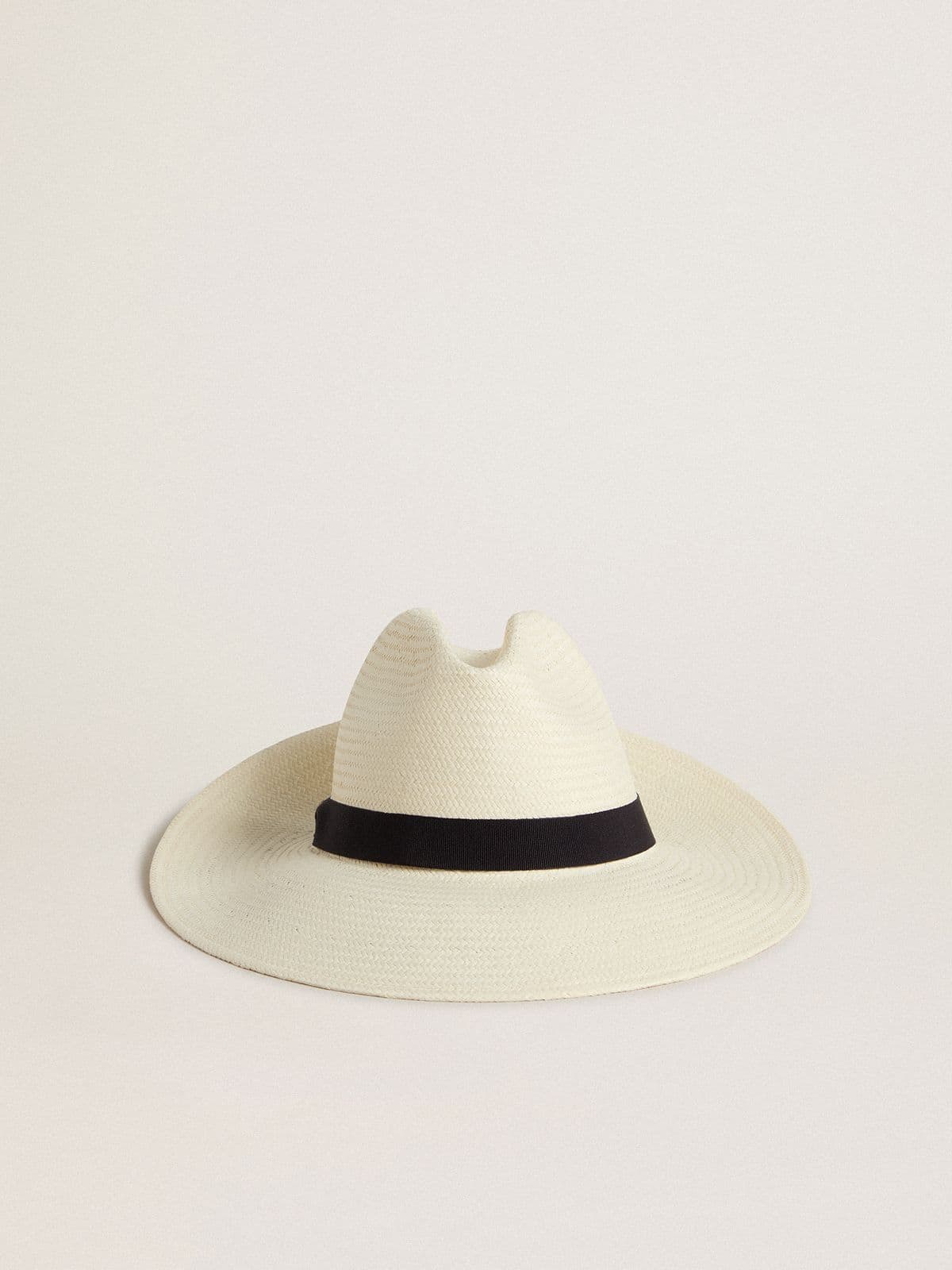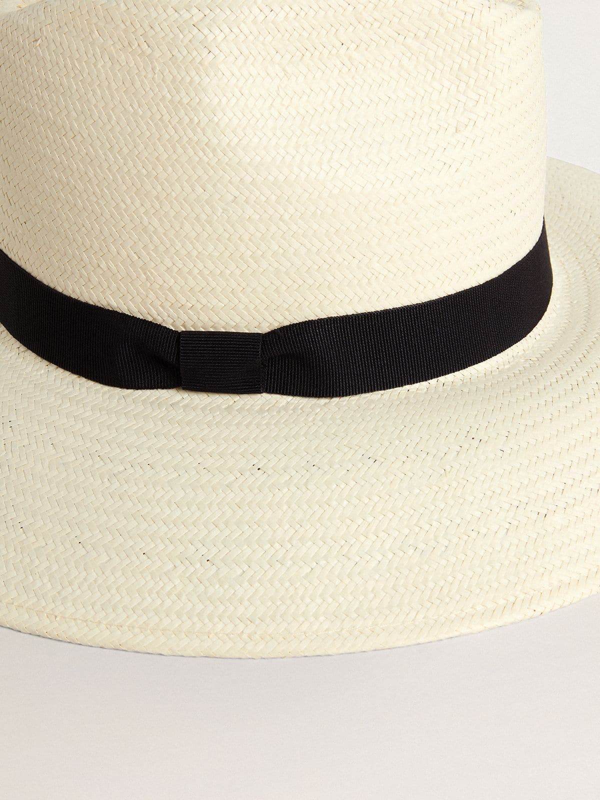 Golden Goose Uomo Accessori Cappello Fedora Golden In Paglia Bianca Con Nastro Nero E Stampa Marina Sotto La Tesa | Arctic Wolf Bianco E Bering Sea Blu