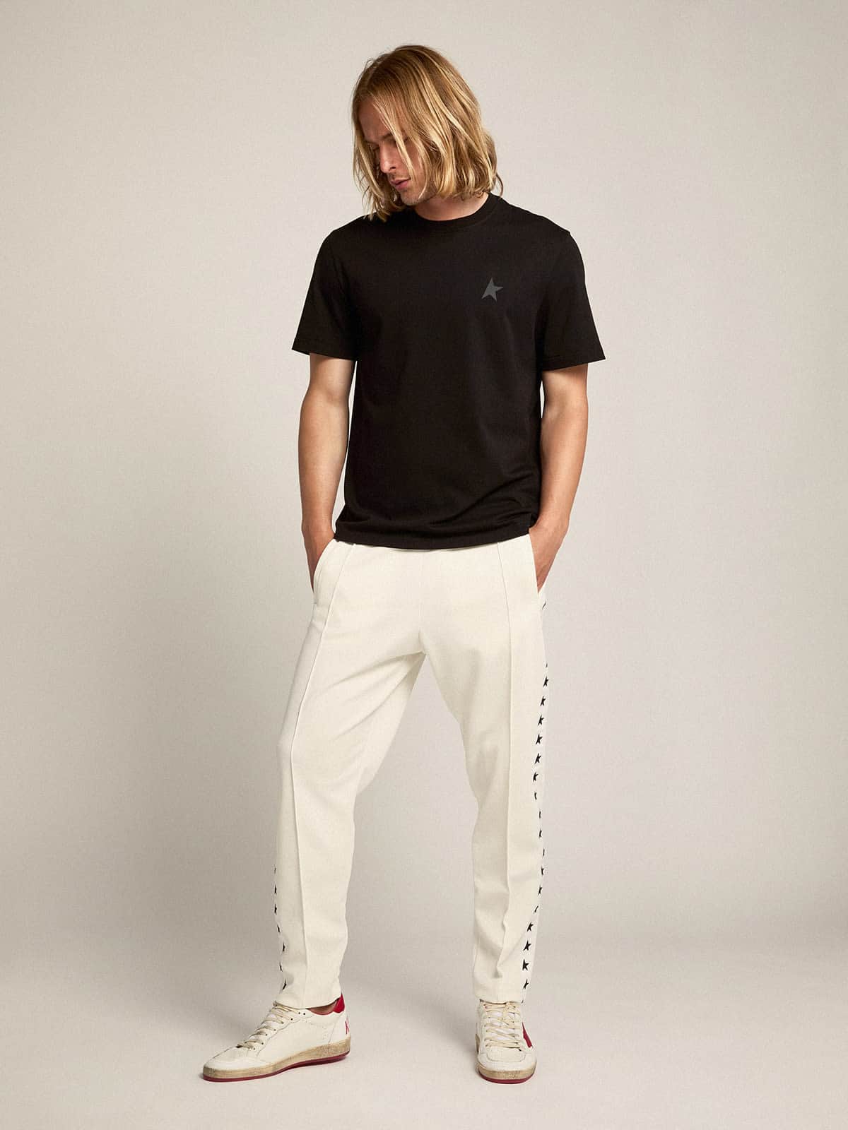 Una collezione dall’anima casual, ma dall’attitude versatile: ispirata agli anni Settanta, porta con sé un allure vintage senza tempo, adatto a ogni occasione e a ogni look. Girocollo e dal fit regular, questa T-shirt in puro cotone nero si caratterizza per la stella ton sur ton sul davanti. Il capo passepartout per ogni tuo look.