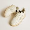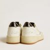 Sognando gli anni Ottanta. Le nostre sneaker Ball Star 2 si rifanno all’atmosfera dei college americani, tra un tiro a canestro e un giro in skateboard. Con la tomaia in pelle bianca, questo modello si distingue per la stella in suede color grigio ghiaccio e per il talloncino in pelle lucida nera. E come tocco finale, i lacci bianchi: le cose belle che non passano mai di moda.