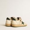 Sognando gli anni Ottanta. Le nostre sneaker Ball Star si rifanno all’atmosfera dei college americani, tra un tiro a canestro e un giro in skateboard. Con la tomaia in nylon e nappa bianchi, questo modello si distingue per la stella e per il talloncino in suede verde. E come tocco finale, la chiusura a strappo in gros-grain con stampa a righe nei toni del bianco, del verde, e del beige, i bordi in cotone bianco, e i lacci bianchi: le cose belle che non passano mai di moda.