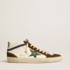 Versatilità dall’eleganza unica: le sneaker Mid Star s’ispirano alla scena skate degli anni Novanta, ma con un approccio raffinato. Con la tomaia in pelle bianca, questo modello si caratterizza per la stella in pelle verde e per la virgola in pelle blu. A completare lo stile, il talloncino in nappa bianca, gli inserti in suede color marrone, e i lacci bianchi.