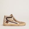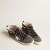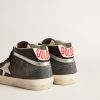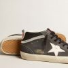 Versatilità dall’eleganza unica: le sneaker Mid Star s’ispirano alla scena skate degli anni Novanta, ma con un approccio raffinato. Con la tomaia in suede nero, questo modello si caratterizza per la stella in pelle bianca e per la virgola in pelle laminata color argento. A completare lo stile, il talloncino in pelle bianca, l’inserto alla caviglia in pelle nera, e i lacci neri.