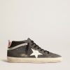 Versatilità dall’eleganza unica: le sneaker Mid Star s’ispirano alla scena skate degli anni Novanta, ma con un approccio raffinato. Con la tomaia in suede nero, questo modello si caratterizza per la stella in pelle bianca e per la virgola in pelle laminata color argento. A completare lo stile, il talloncino in pelle bianca, l’inserto alla caviglia in pelle nera, e i lacci neri.