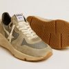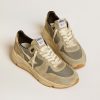 Golden Goose Uomo Scarpe Running Sole In Suede Grigio Con Stella Bianca E Talloncino Bianco