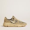 Golden Goose Uomo Scarpe Running Sole In Suede Grigio Con Stella Bianca E Talloncino Bianco