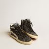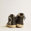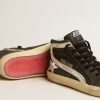 Golden Goose Uomo Scarpe Slide In Suede Nero Con Stella E Virgola In Pelle Laminata Argento